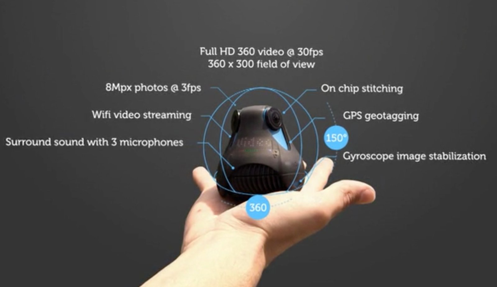 En este momento, 360cam es un proyecto de Kickstarter que ya ha alcanzado su meta, por lo que se espera que llegue al mercado en los próximos meses por un precio de $250 dólares, en la línea de cámaras similares y deportivas, puesto que 360cam es totalmente resiste a golpes y al agua, incluye modo HDR, giroscopio y GPS para la localización de imágenes y micrófono con estabilizador de audio y parece llega a ponerle las cosas difíciles a GoPRO: