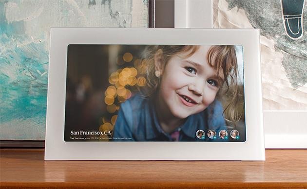 Posiblemente el reclamo más llamativo del producto es su pantalla de quince pulgadas, bastante más grande de lo habitual en marcos digitales. La resolución en el panel no está mal, con 1920×1080 píxeles. Dispone en su interior de 64GB para almacenar infinidad de contenidos – 250GB en la nube -. El dispositivo está creado tanto para mostrar vídeos como fotos. La ventaja que quieren vendernos sus creadores está en el software, que hace muy inteligente al marco. El dispositivo lee la información en la fotografías, como fecha o información GPS, para mostrarlas según el contexto.