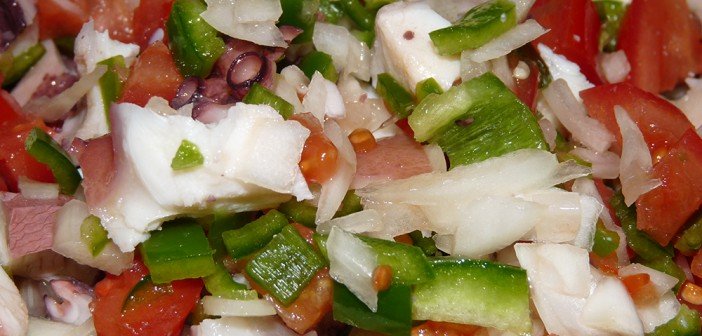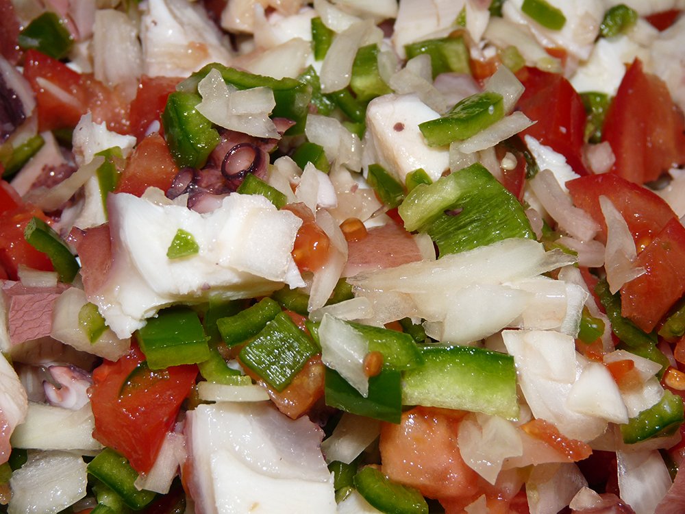 Cuando el pulpo esté fresco, retira, escurre bien y lleva a la parrilla por unos minutos hasta que dore por todos lados. Corta en trocitos pequeños y agrega a la vinagreta.. Lleva a la nevera por lo menos 1 hora y mezcla nuevamente antes de servir. Sirve rociado con un cilantrico picadito…