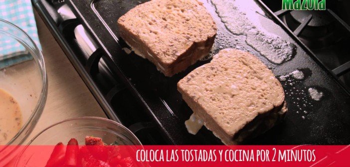 TOSTADAS FRANCESAS RELLENAS DE JAMÓN Y QUESO CON FRESA MACERADA EN HIERBABUENA (MAZOLA)