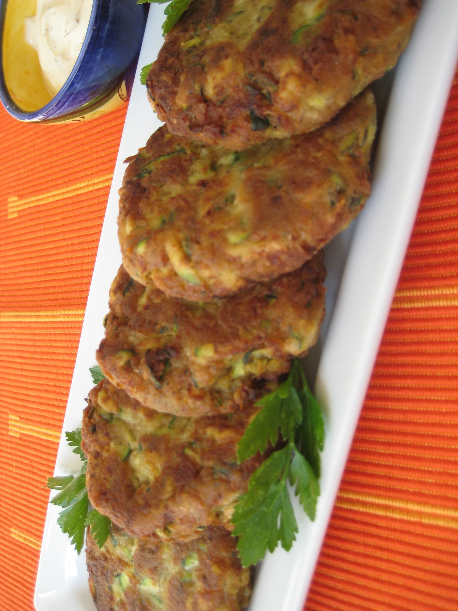 En un bowl mediano, combine el zucchini rallado junto con el pan rallado, queso parmesano, huevo batido, sal, pimienta mezcla de albahaca y perejil y la cebolla.