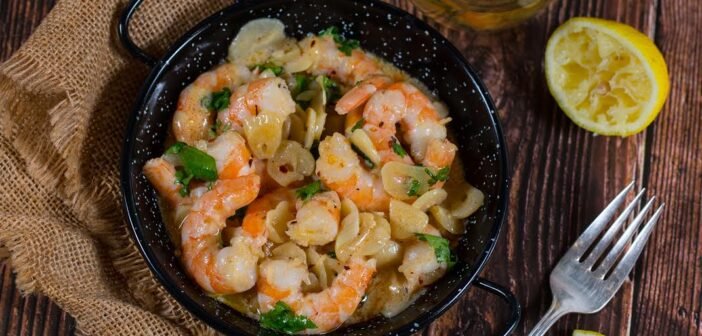 Cuando el ajo este dorado, incorporamos los camarones y cocinamos por 1 minuto. Añadimos el vino y apagamos y retiramos del fuego, dejándolos en la sartén macerándose, por 15 minutos como mínimo.
