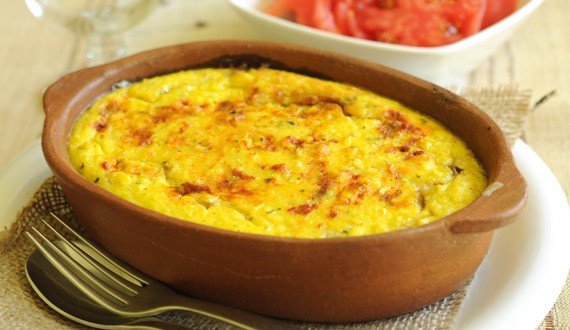 En un molde coloque un poco de la mezcla de maiz en el fondo, al centro el relleno de las cebollas y termine con mas mezcla del maiz. Por arriba espolvoree un poco de azucar y lleve al horno por 20 minutos mas o menos a una temperatura de 375 grados F.