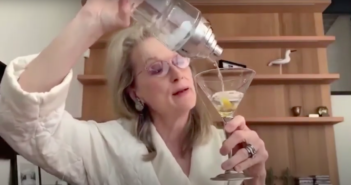 Desde sus respectivas casas, en bata blanca y cada una con sus bebidas, Meryl Streep,…